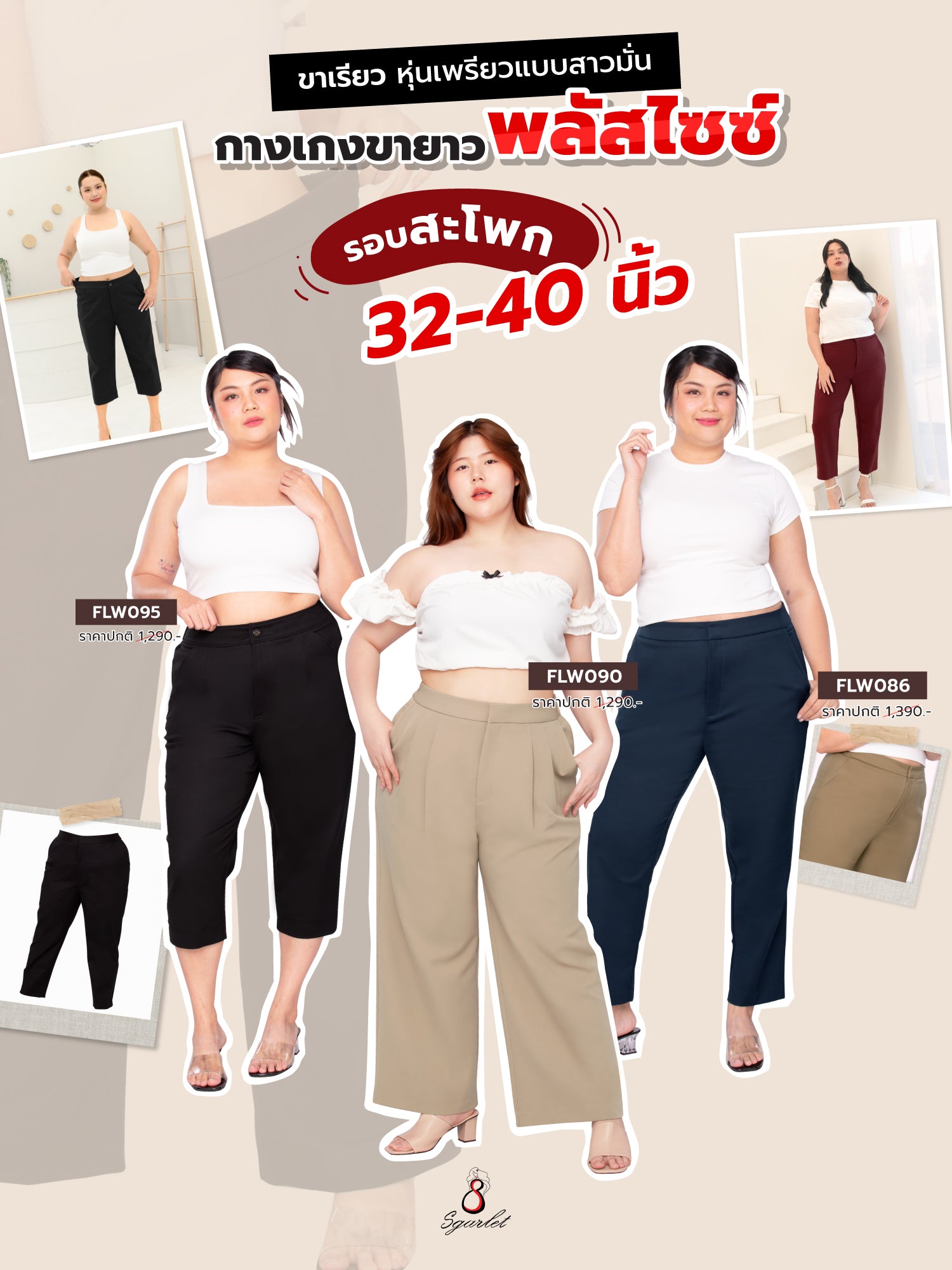 Sgarlet กางเกงขายาวไซส์ใหญ่ทรงสลิม แนบลำตัวเนียนเรียบ FLW086