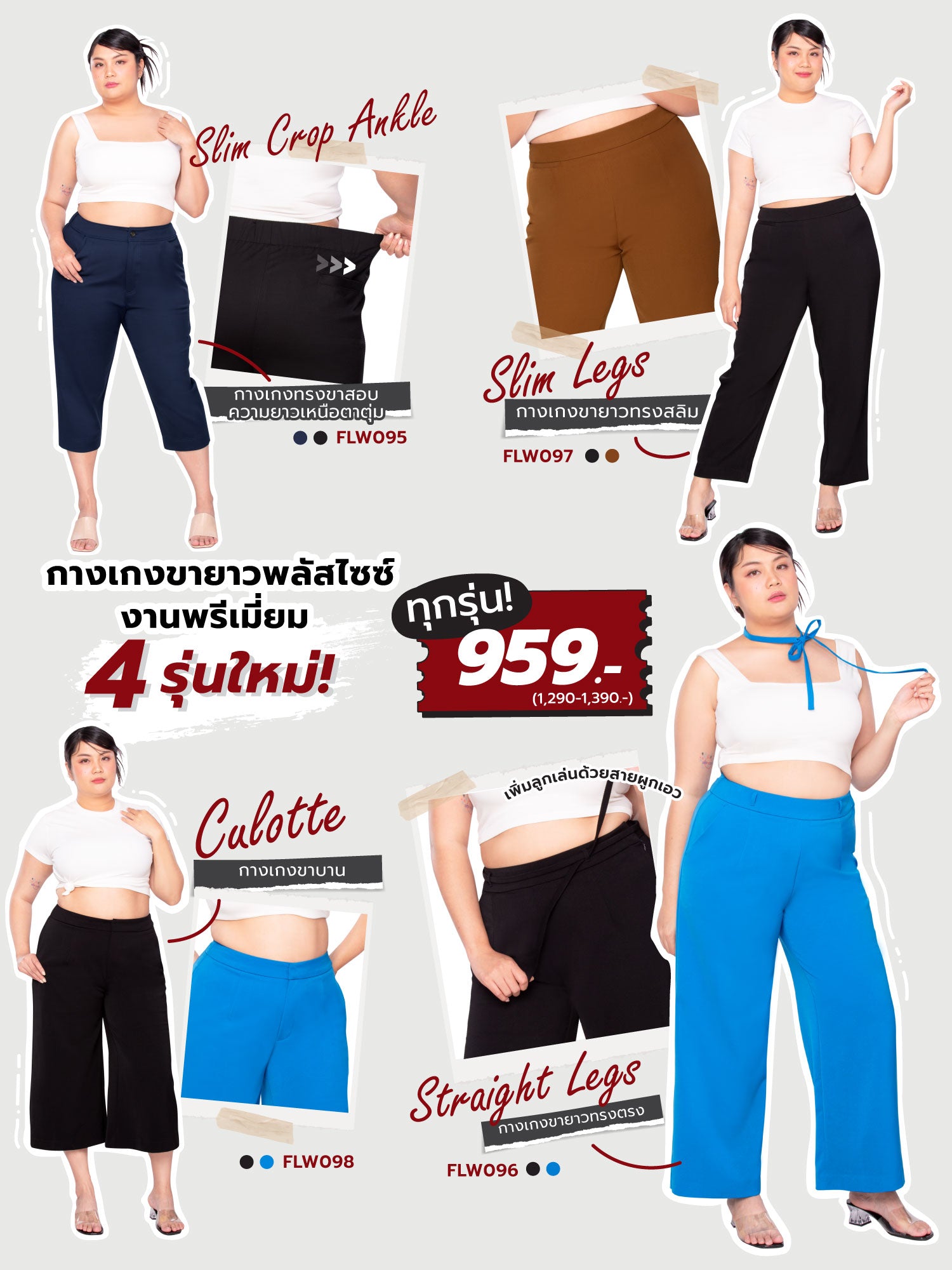 Sgarlet กางเกงขายาวไซส์ใหญ่ทรงสลิม แนบลำตัวเนียนเรียบ FLW086