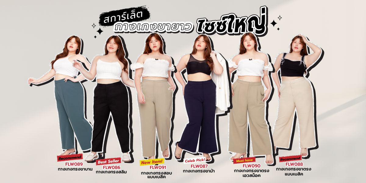 Sgarlet กางเกงขายาวไซส์ใหญ่ทรงสลิม แนบลำตัวเนียนเรียบ FLW086