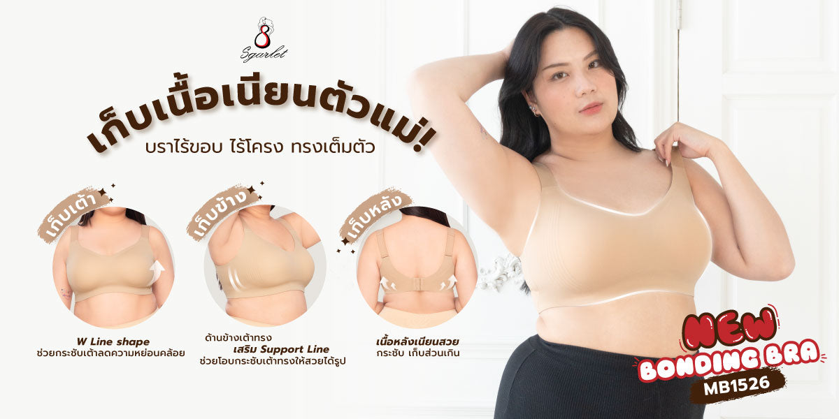 Sgarlet เสื้อในไซส์ใหญ่ไร้โครงสบายคัพ เก็บเนื้อส่วนเกิน ตัวเรียบ สีดำ สีเนื้อ สีโอลด์โรส MB1507