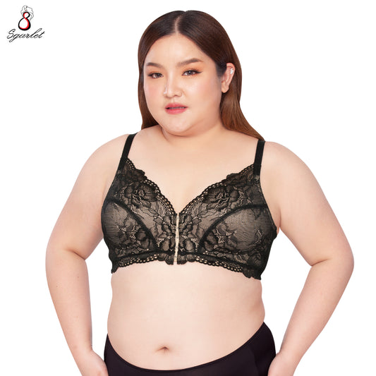 Sgarlet เสื้อในไซส์ใหญ่ตะขอหน้า ไร้โครง อกชิดทรงกระชับ ผ้าลูกไม้ สีดำ/เนื้อ MB1523