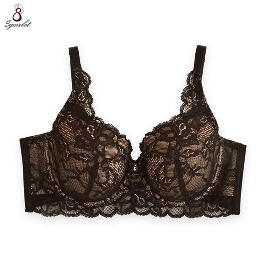 Sgarlet เสื้อในไซส์ใหญ่มีโครง เต้าซีทรู ไม่มีฟองน้ำ ผ้าลูกไม้ สีดำ/เนื้อ/สีชาเย็น MB1733