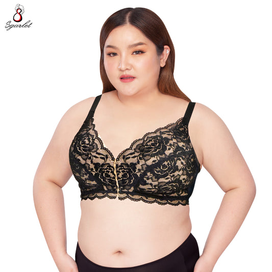 Sgarlet เสื้อในไซส์ใหญ่ตะขอหน้า ไร้โครง อกชิดทรงกระชับ ผ้าลูกไม้ สีดำ/เนื้อ MB1523
