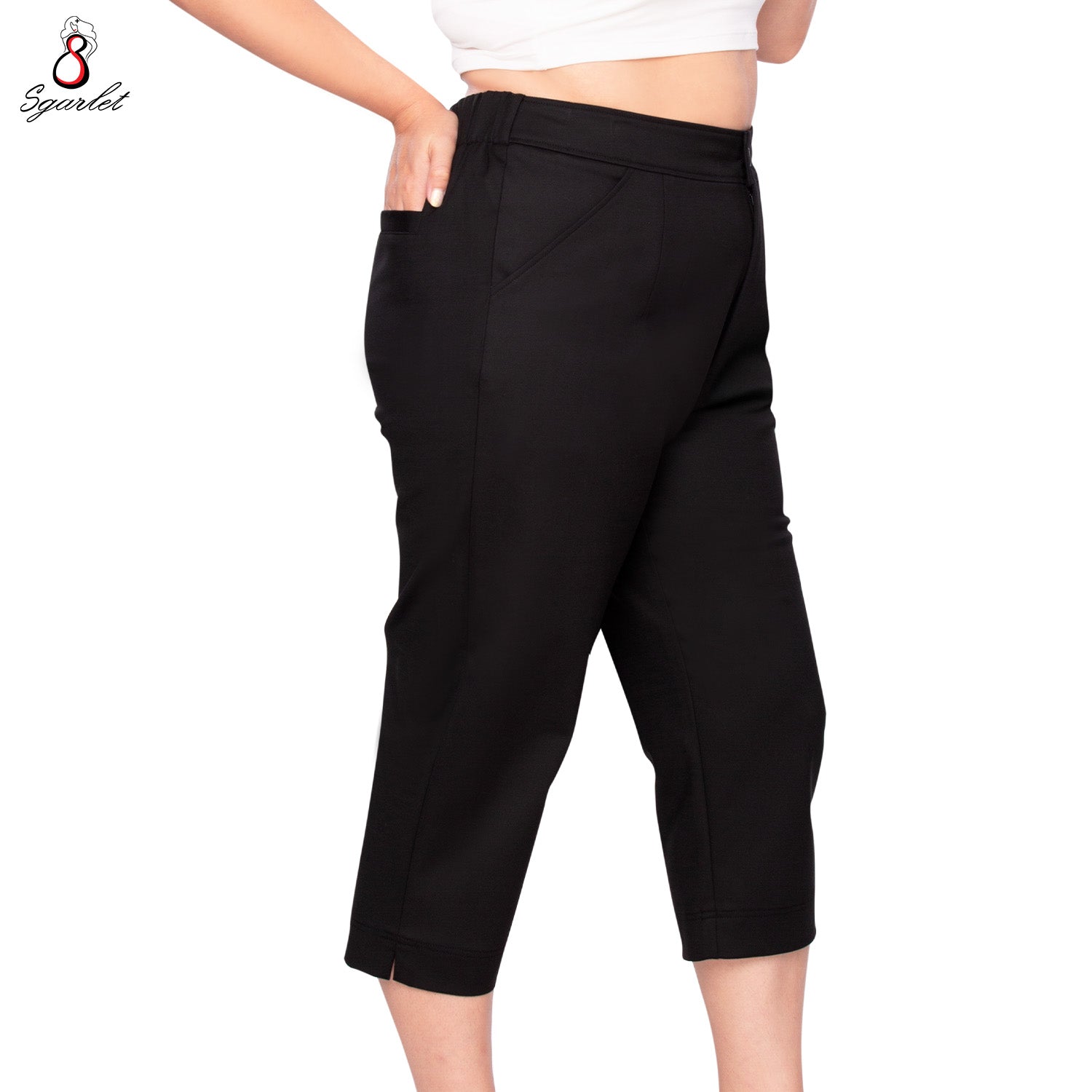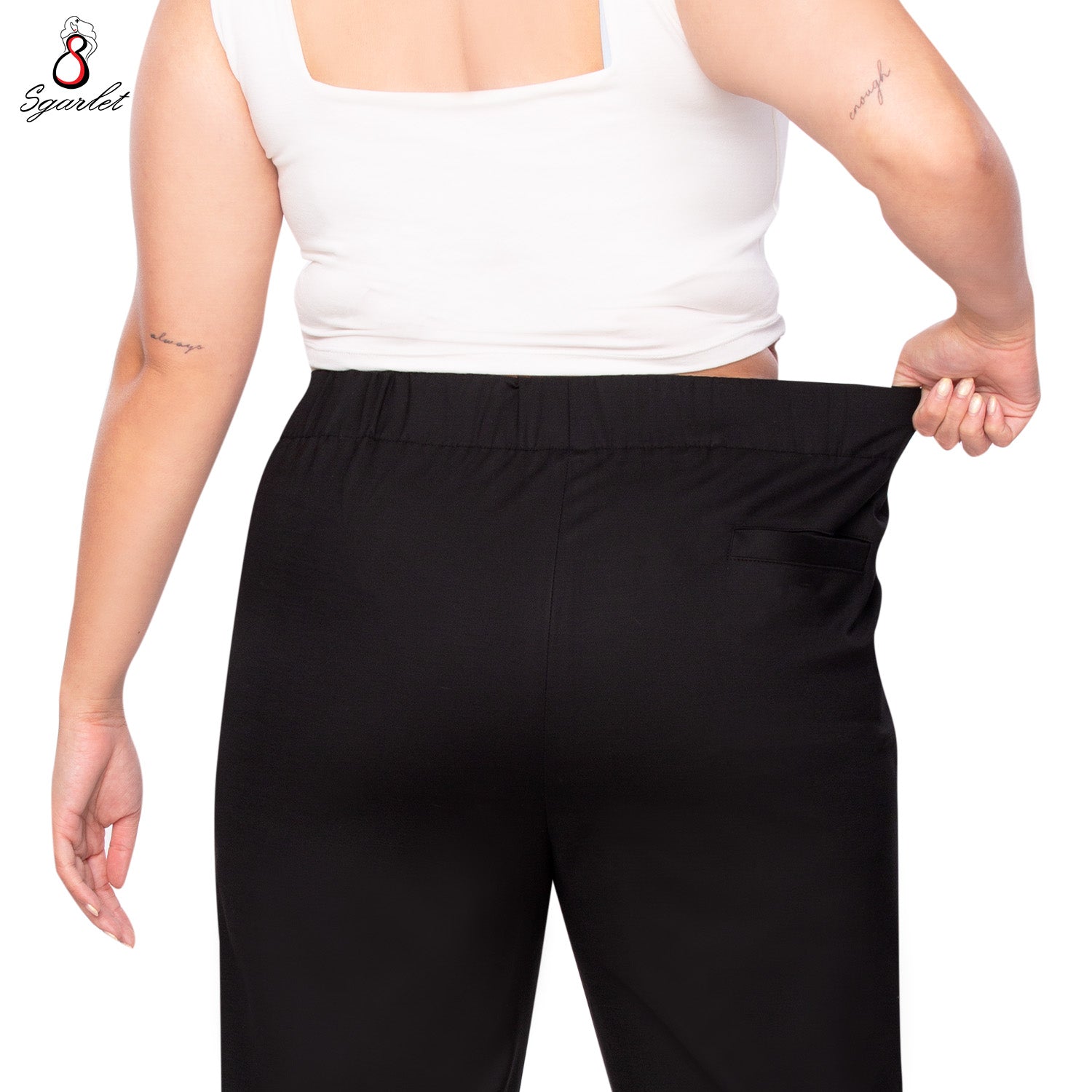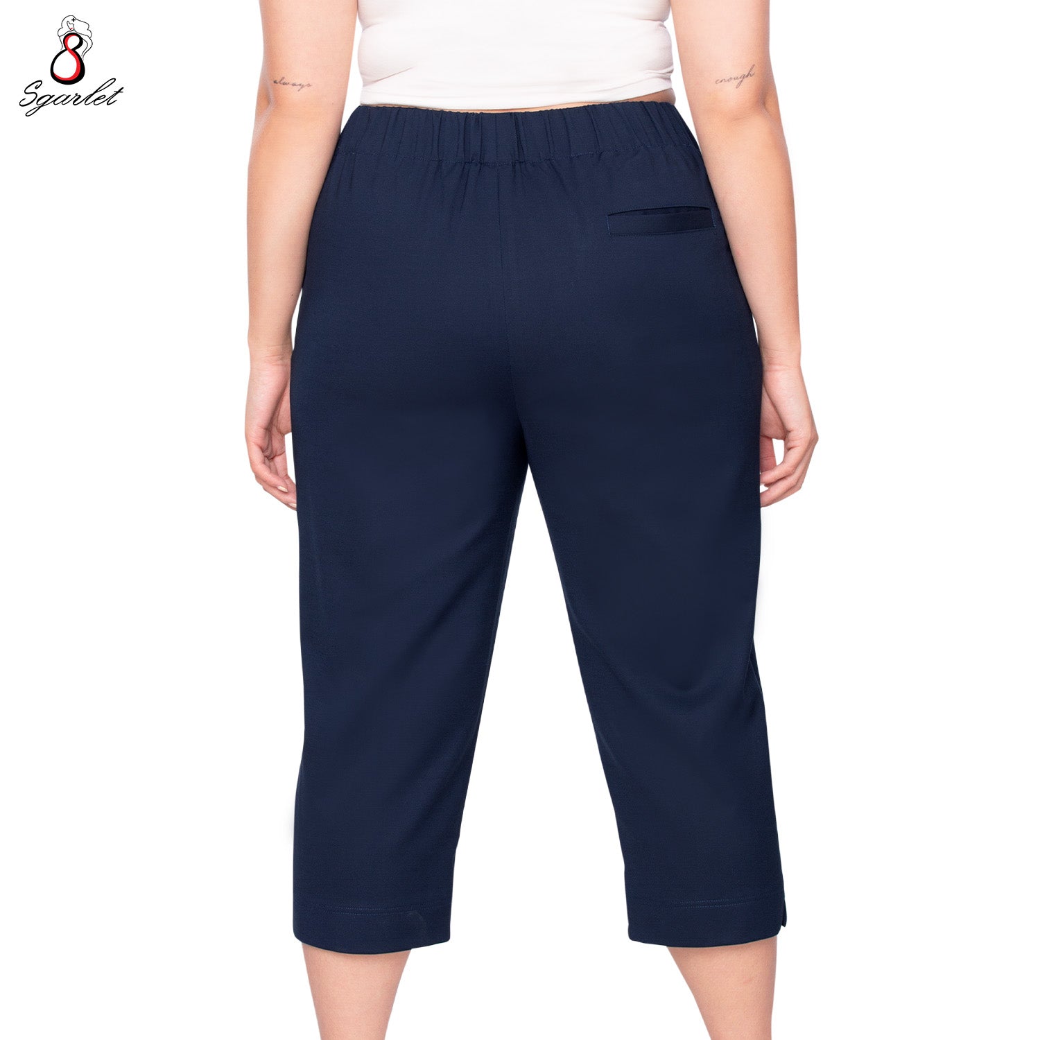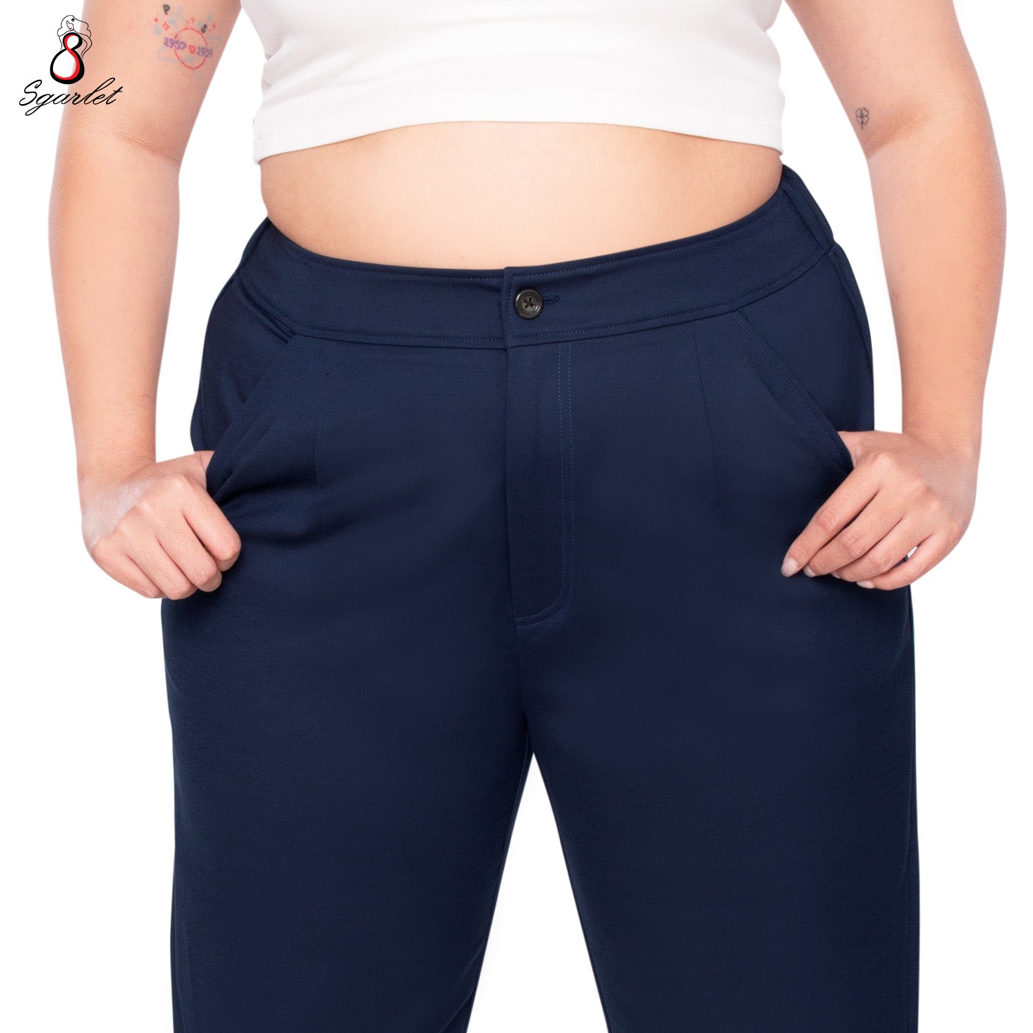Sgarlet กางเกงขายาวไซส์ใหญ่ทรงสอบสลิม เอวยางยืด เหนือตาตุ่ม สีดำ/น้ำเงินเข้ม FLW095