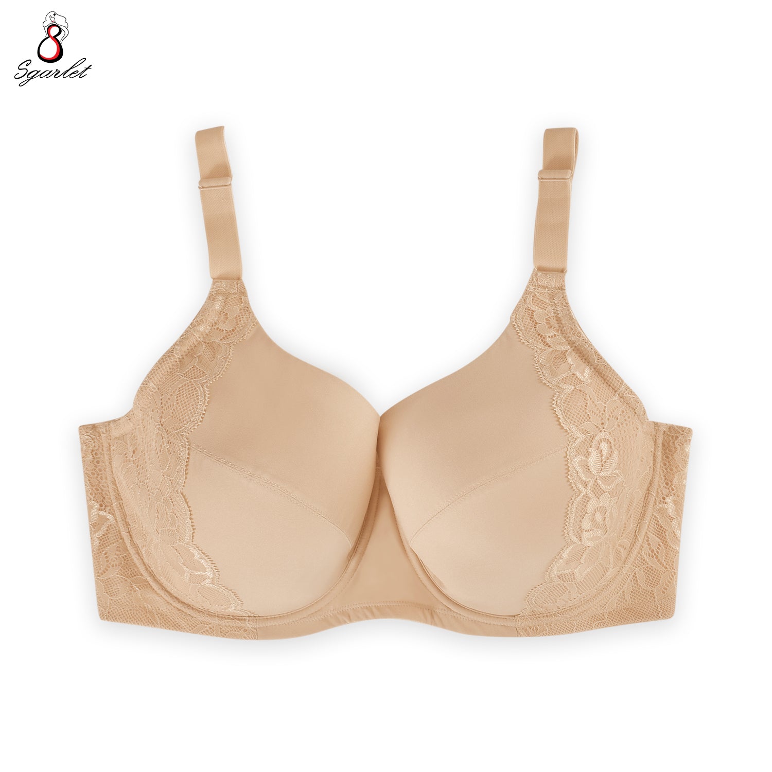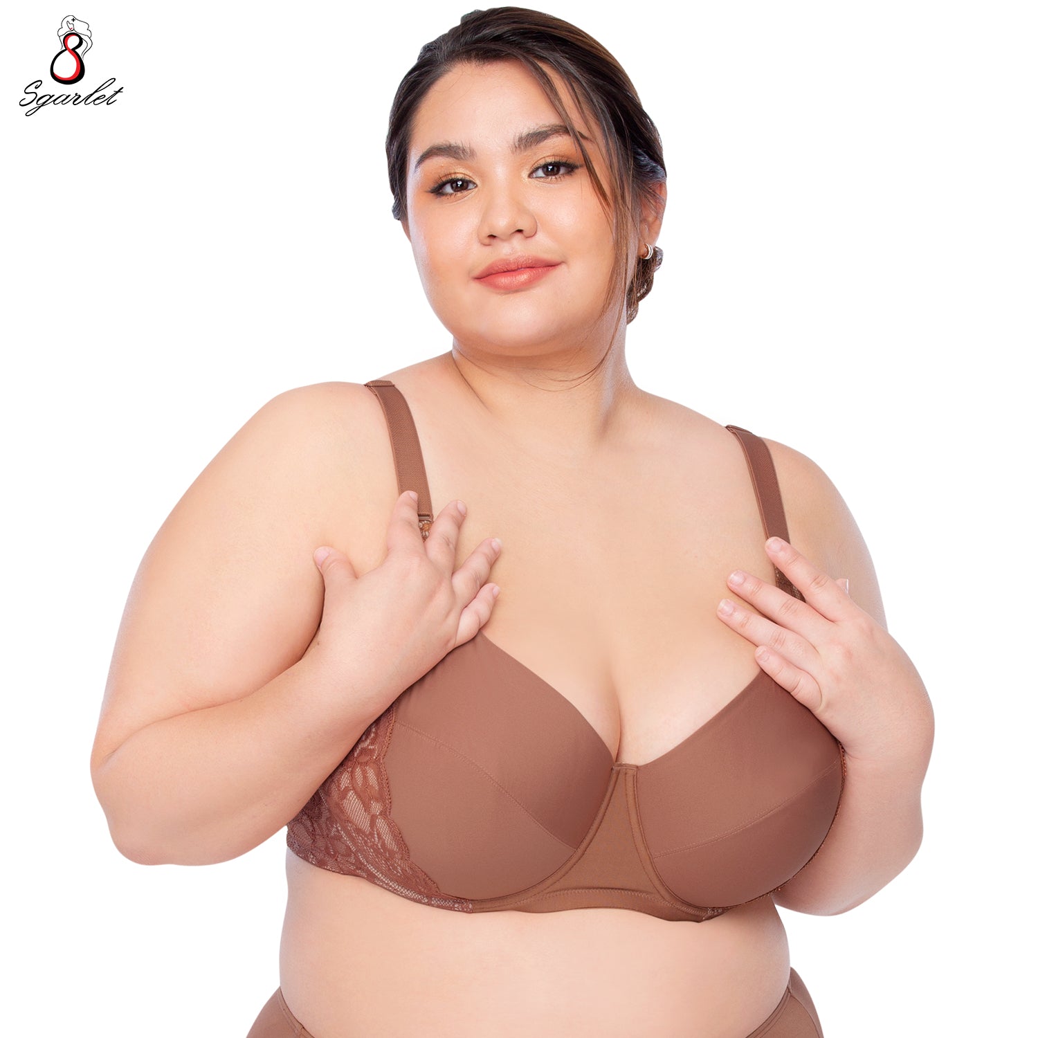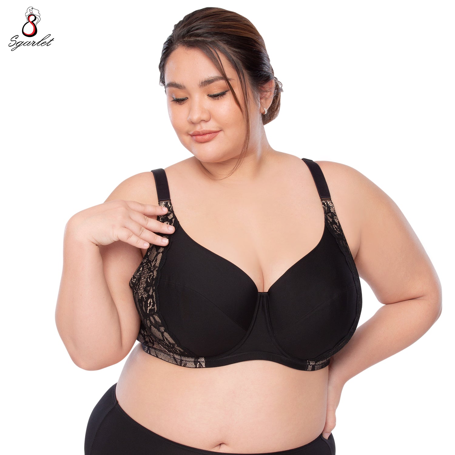 Sgarlet เสื้อในไซส์ใหญ่มีโครง เก็บทรงคัพ กระชับรอบลำตัว ผ้าลูกไม้ สีดำ/เนื้อ/ชาเย็น MB1735