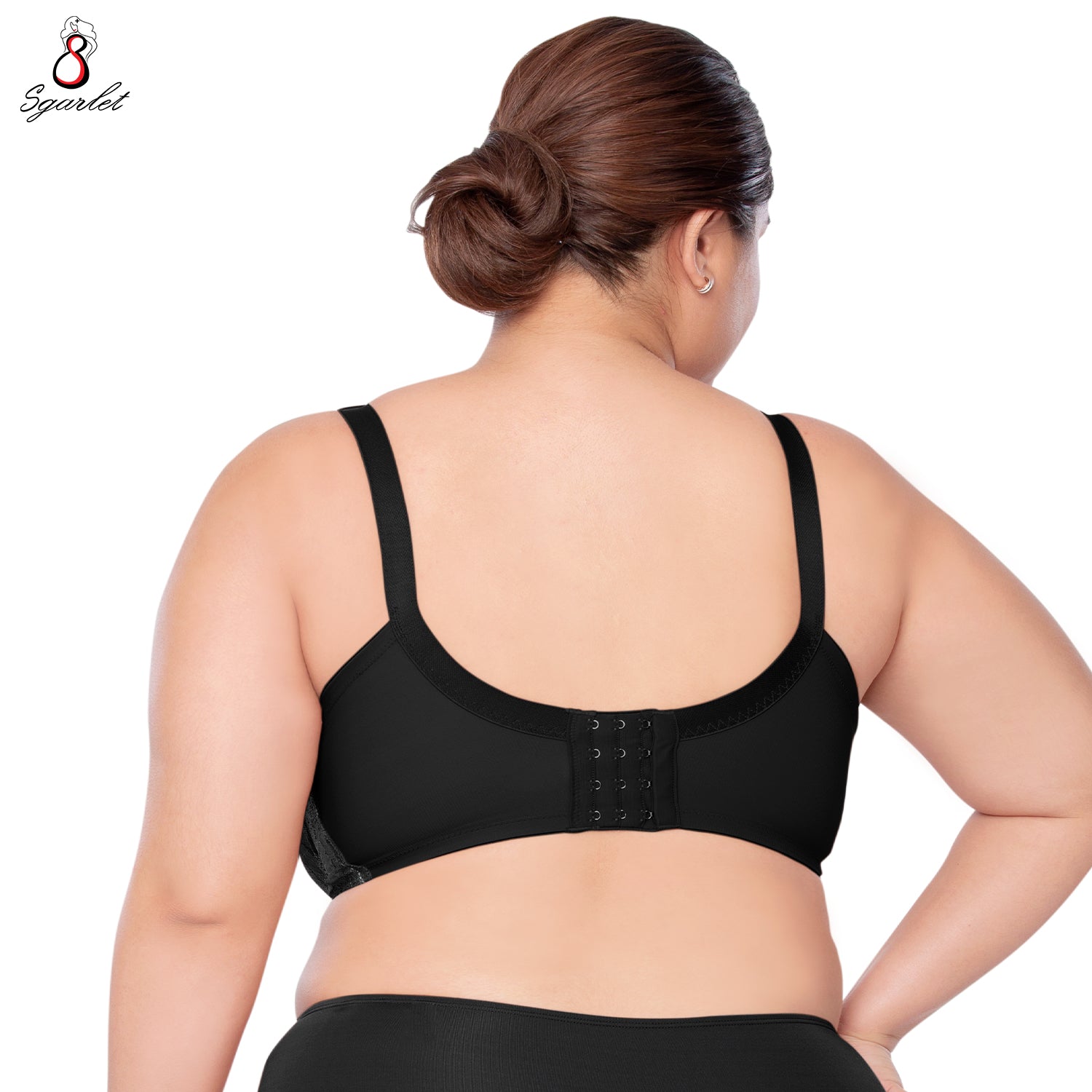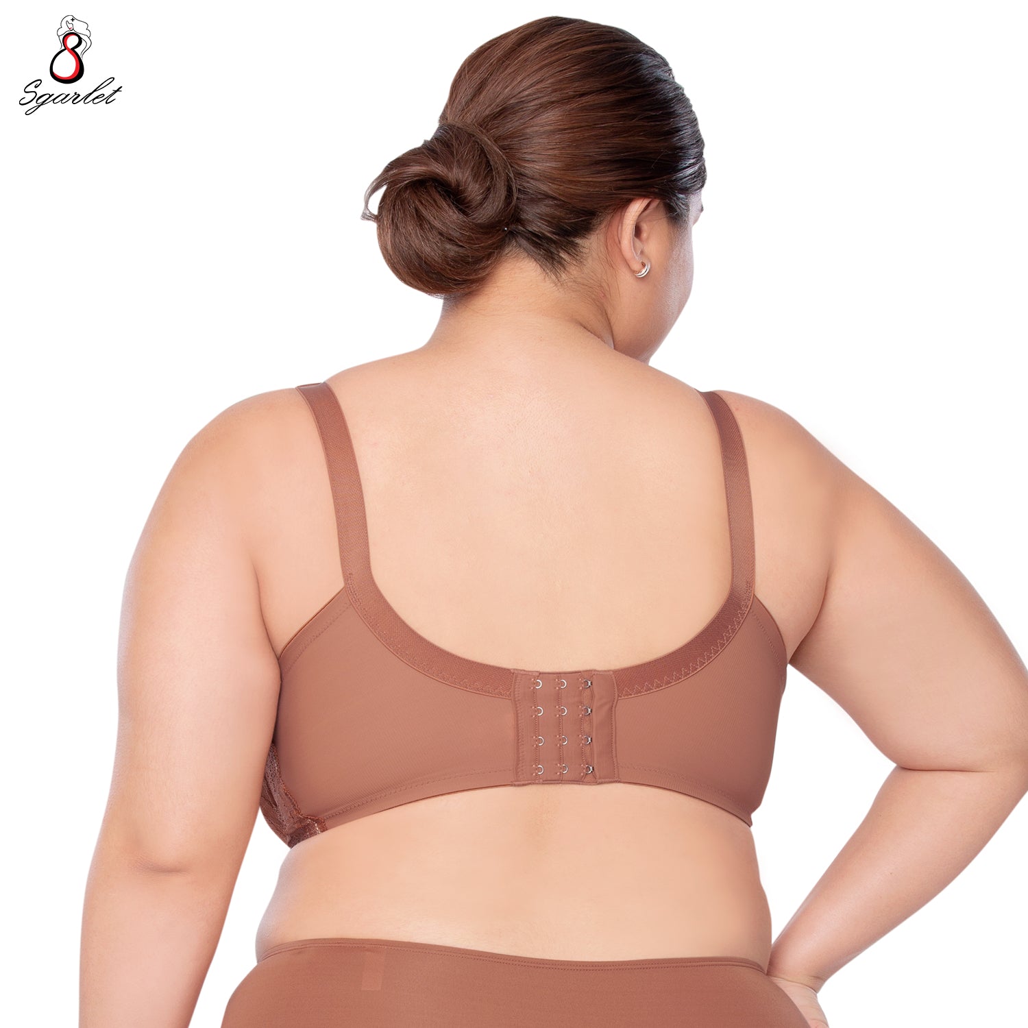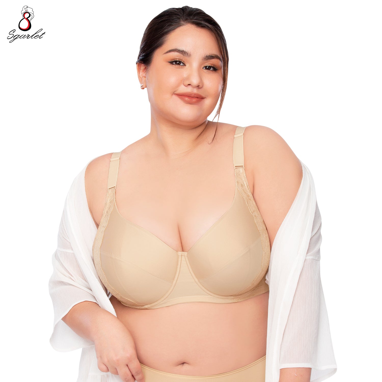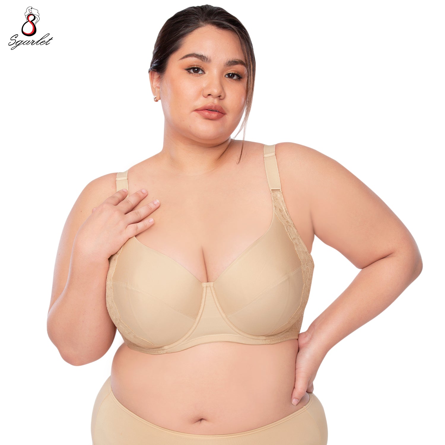 Sgarlet เสื้อในไซส์ใหญ่มีโครง เก็บทรงคัพ กระชับรอบลำตัว ผ้าลูกไม้ สีดำ/เนื้อ/ชาเย็น MB1735